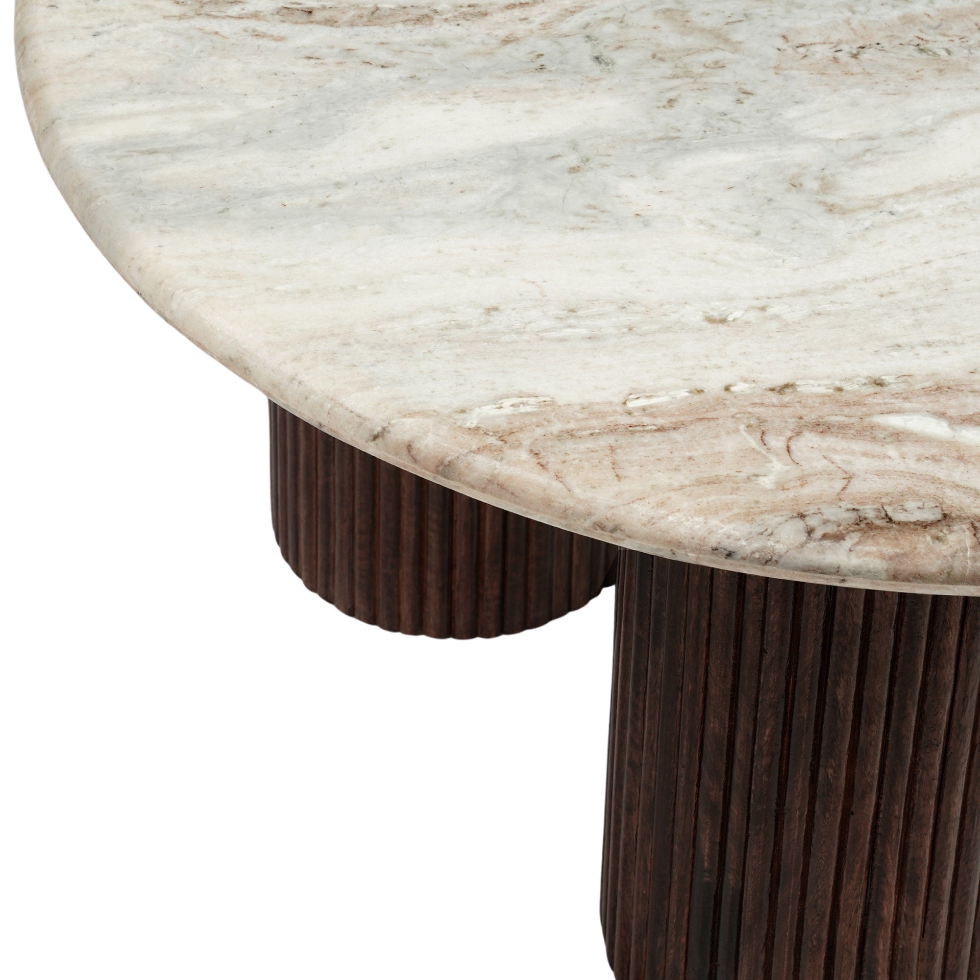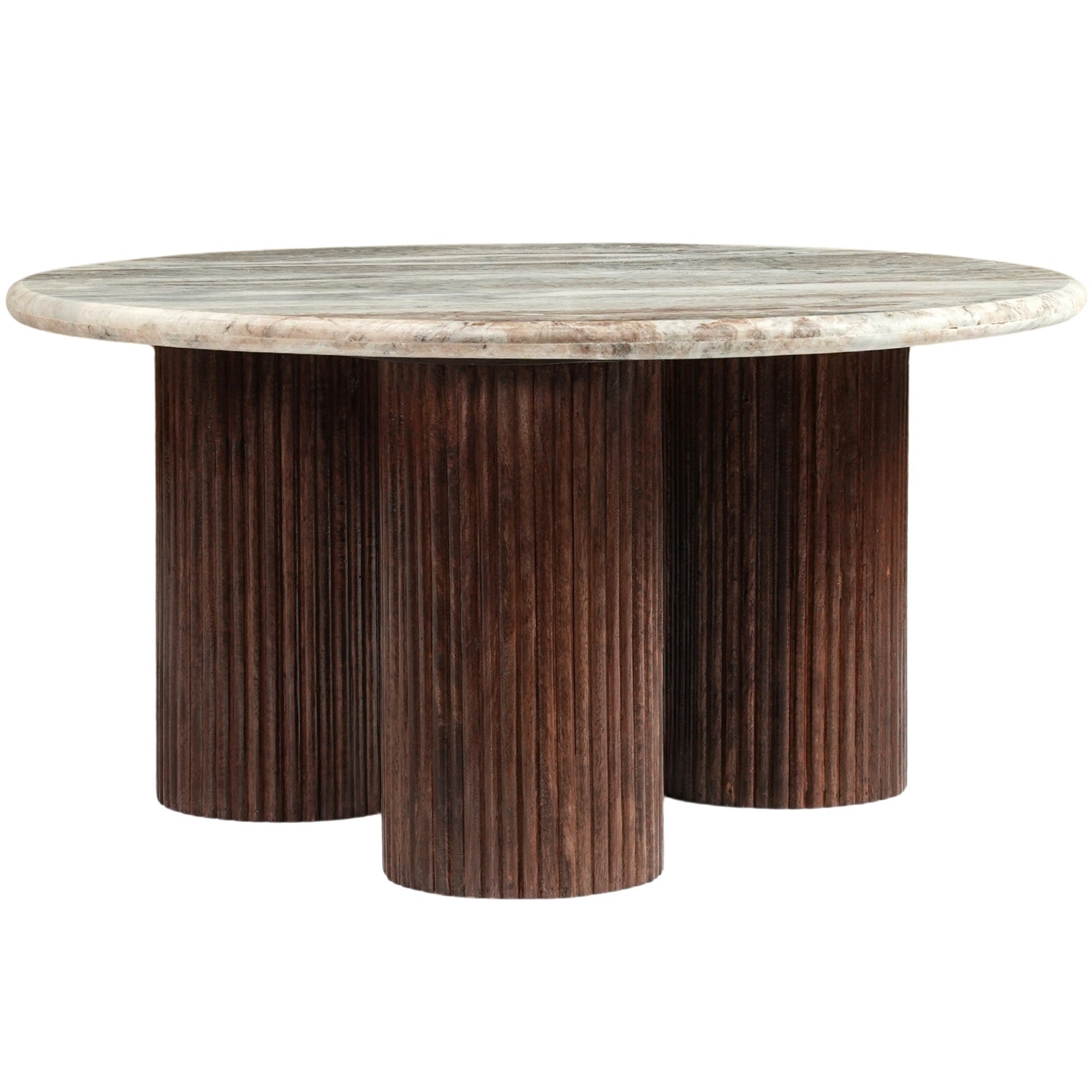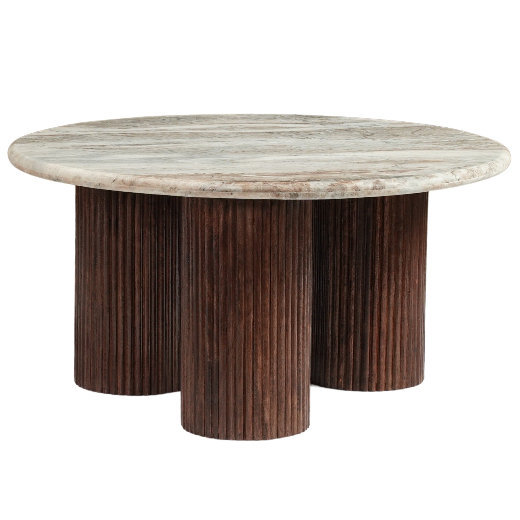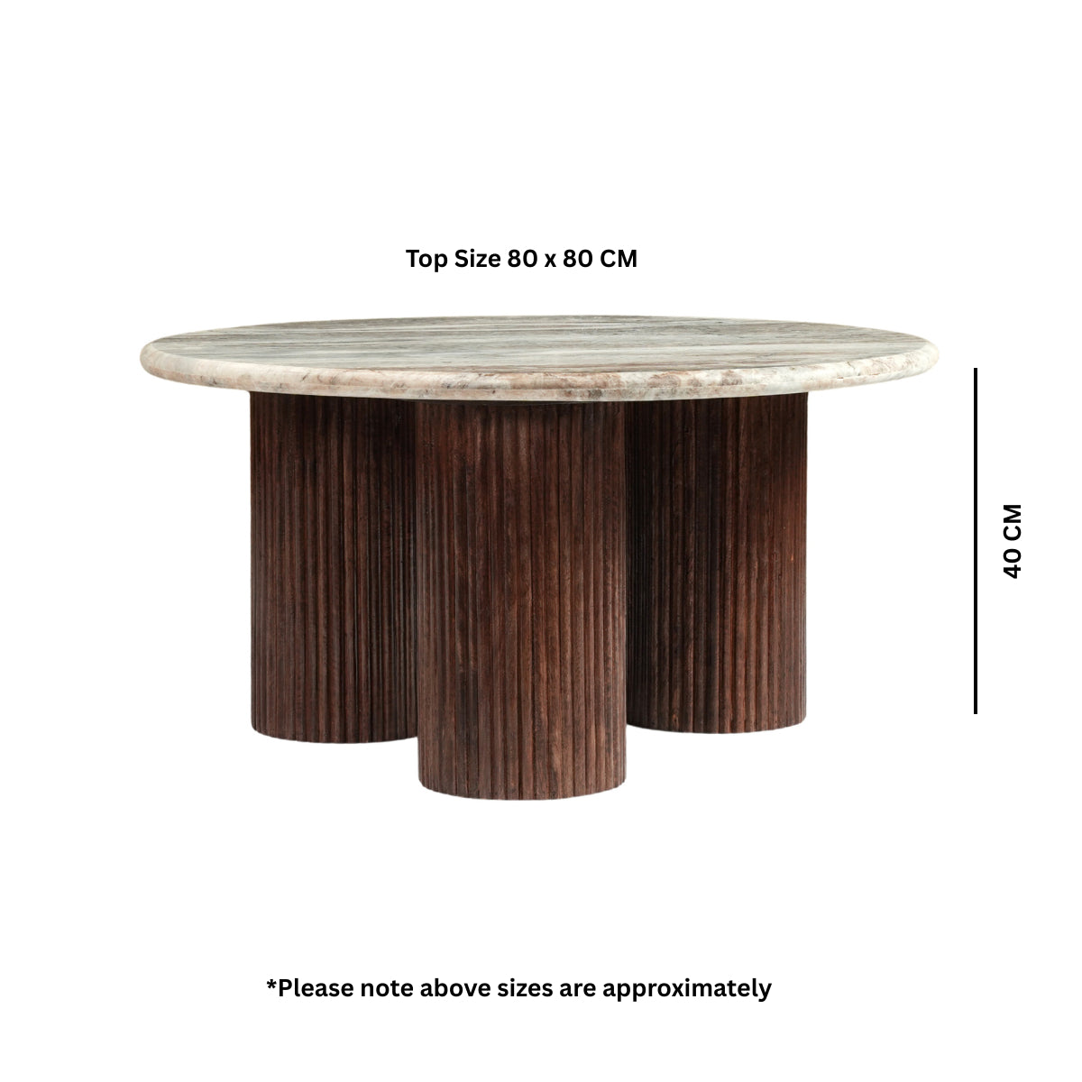 Ajmer Round Marble Top & Wood 3 Pedstal Legs Coffee Table