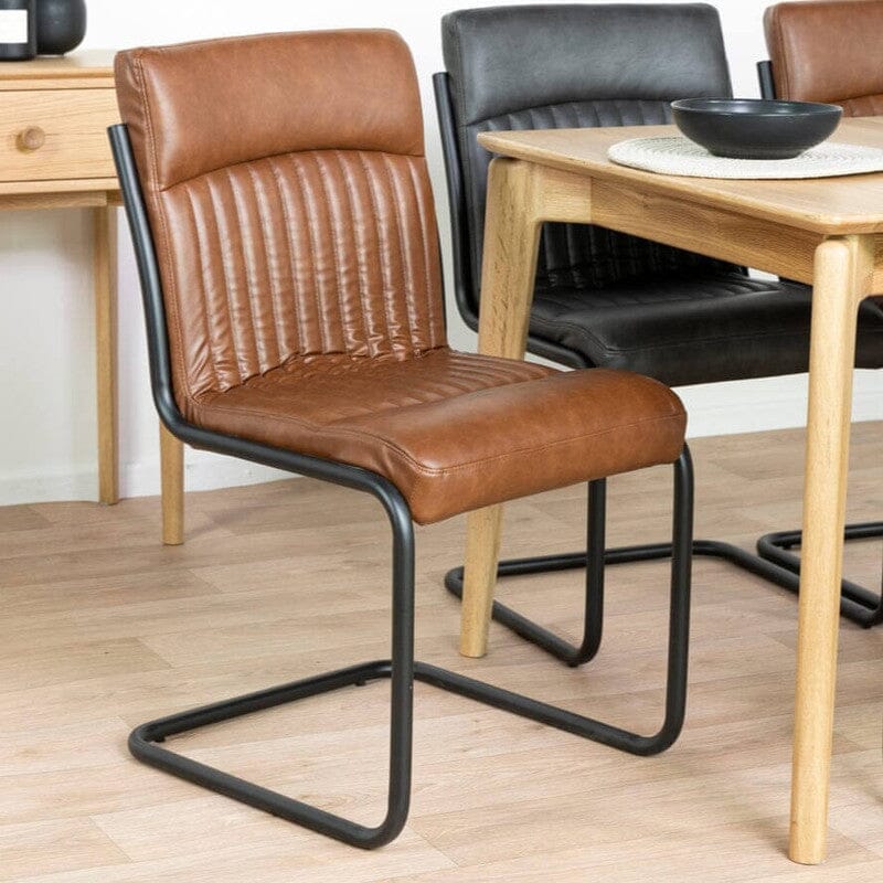 The **metal frame** ensures exceptional stability and a sleek, modern look, creating a stunning contrast with the warm brown leather. Its minimalist design makes it a versatile piece, suitable for various decor styles, from contemporary to industrial or even rustic. The ergonomic structure of the chair provides comfort during long meals or gatherings, making it as practical as it is stylish.