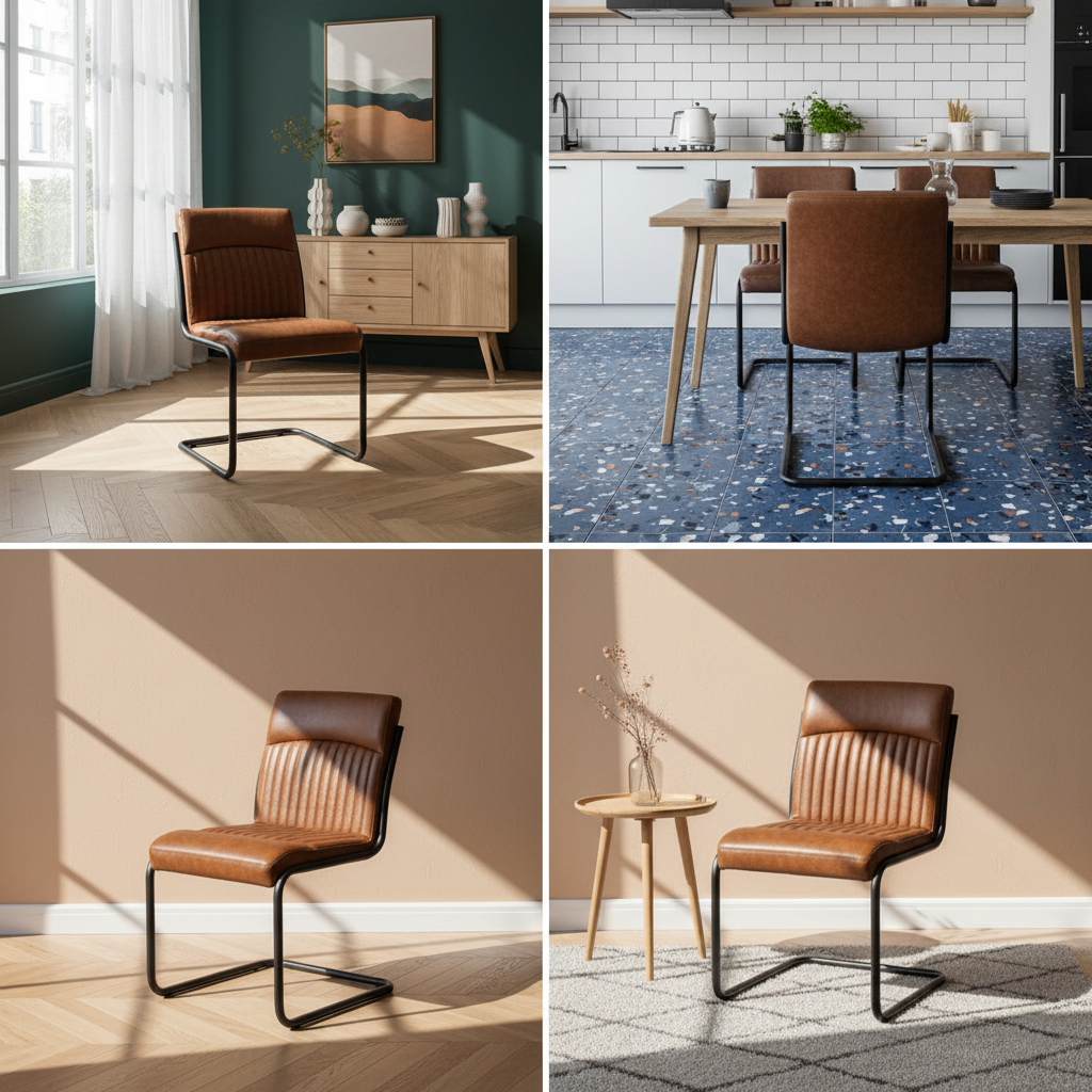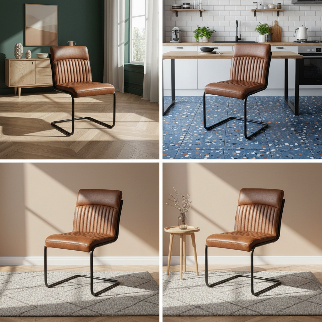 Ideal for both residential and commercial spaces, this brown leather dining chair combines timeless elegance with modern design. Whether you’re furnishing a cozy dining room or a chic restaurant, this chair offers a sophisticated seating solution that balances comfort, durability, and visual appeal, creating a welcoming yet stylish atmosphere.