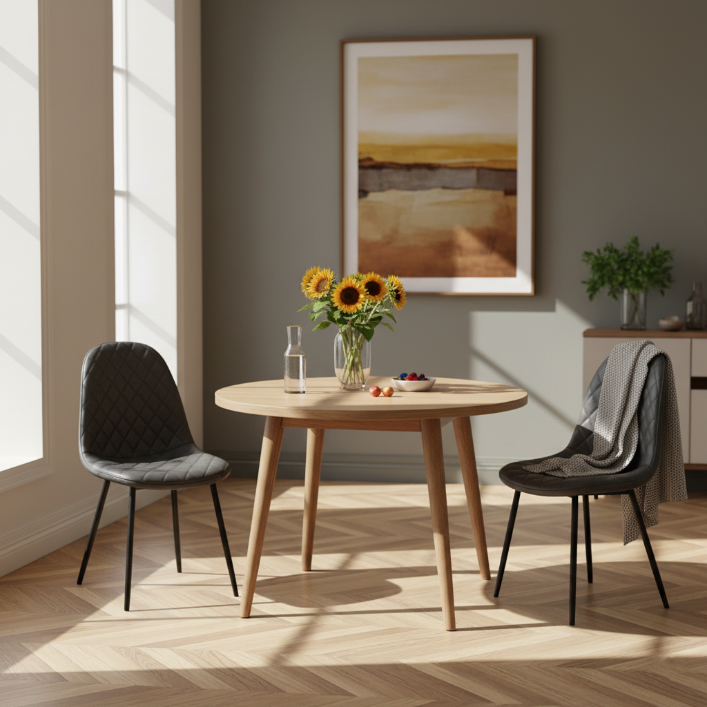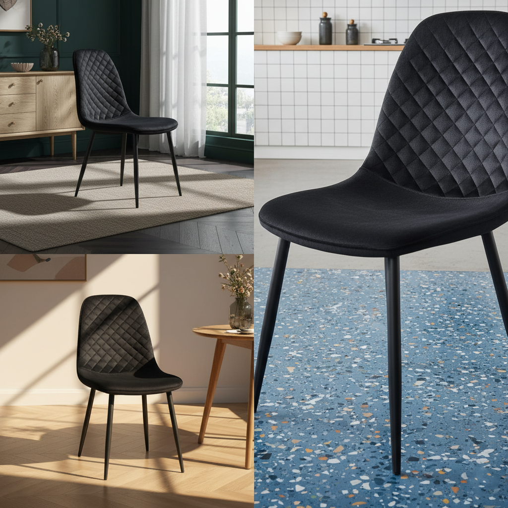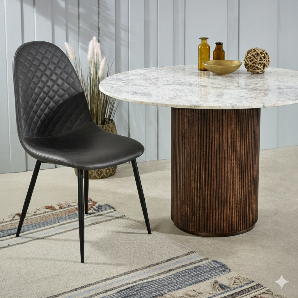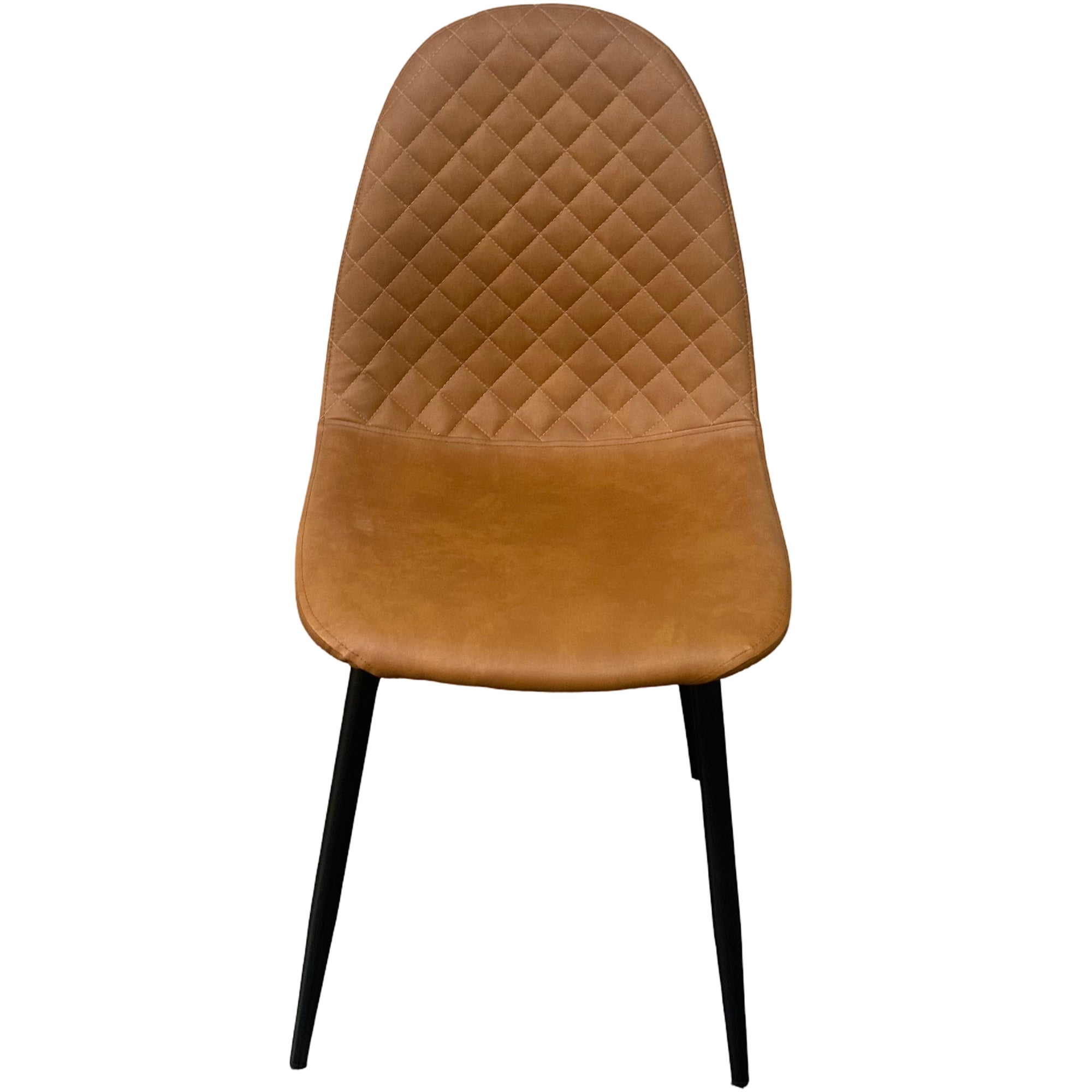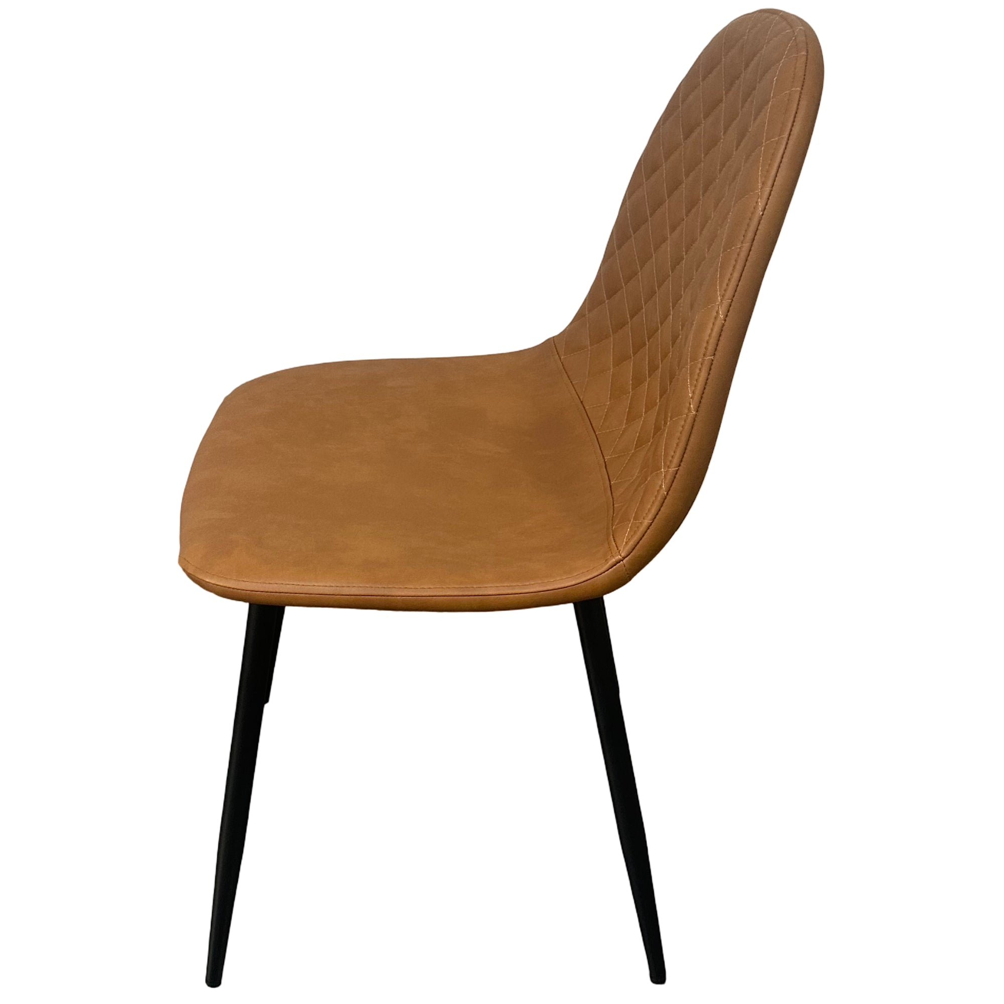 With a perfect balance of pattern and texture the Corona Chair is a statement piece ready for the modern dining space. The black legs add a sleek, minimalist finish and offer a perfect way to add a stark accent to your home. The Scandi-style faux leather seat with diamond pattern stitching is a unique take on a classic design offering comfort and durability for everyday use.