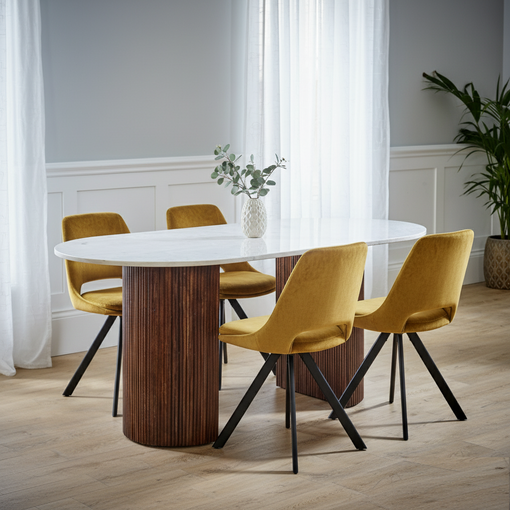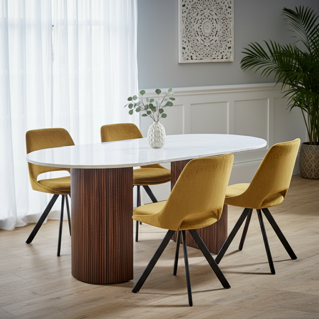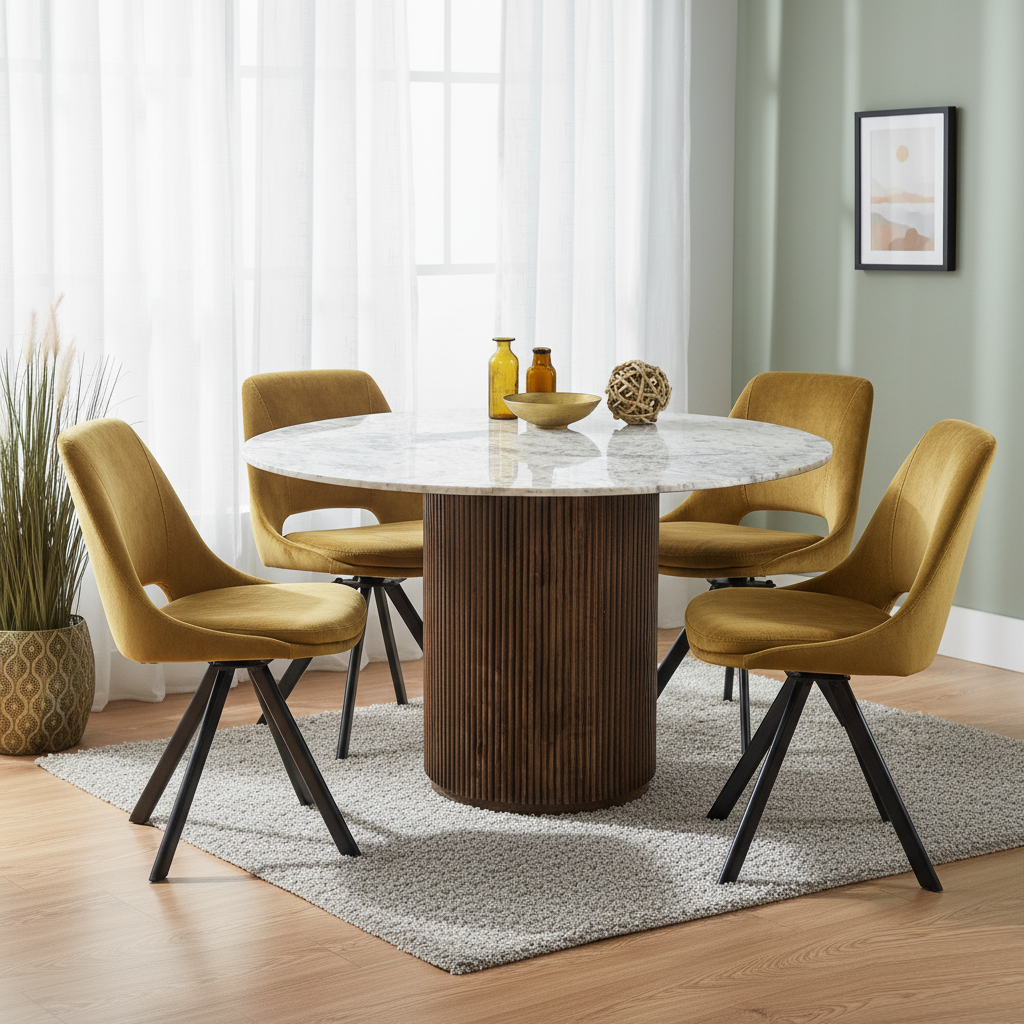 *Vibrant Color: A bold mustard color adds a lively and stylish accent to your dining space.