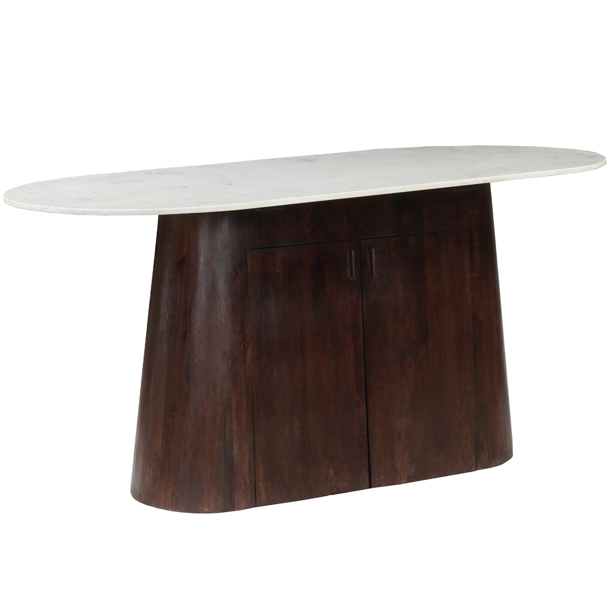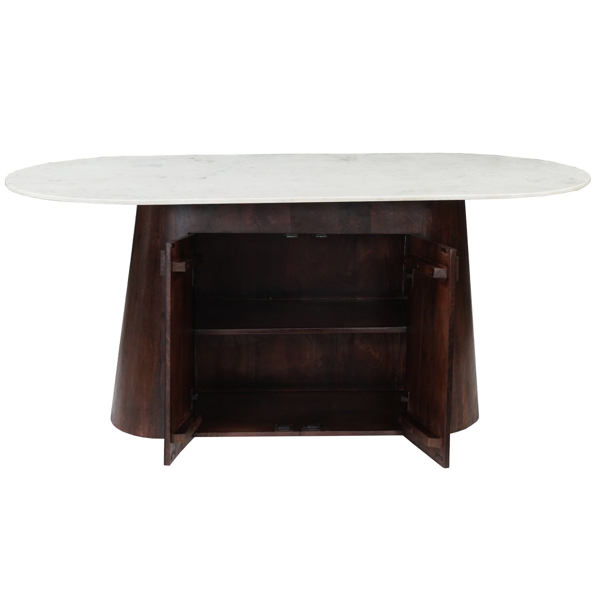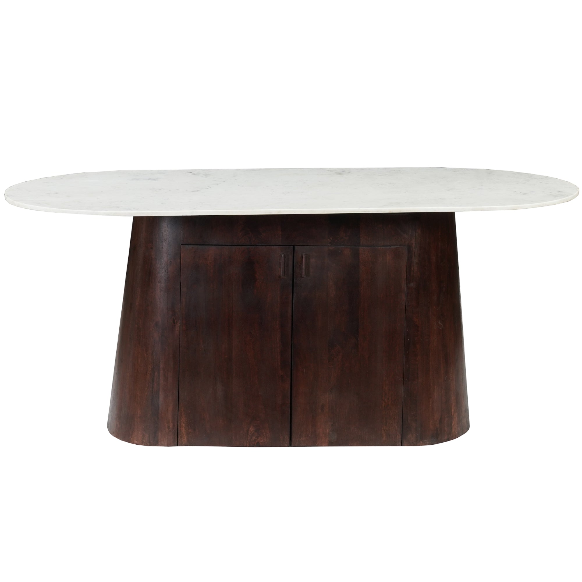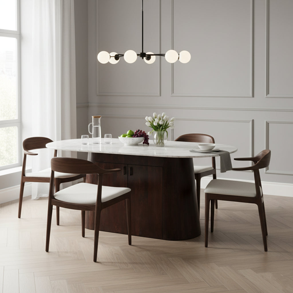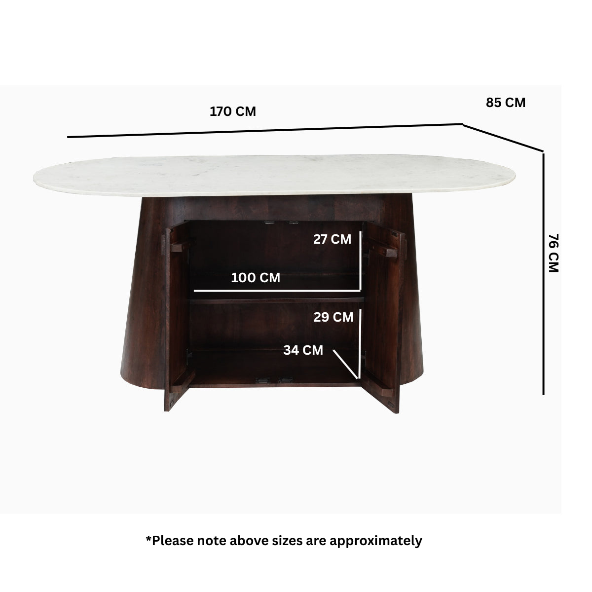 The Luxor Natural Oval Marble & Wood Dining Table combines timeless elegance with practical functionality. Measuring 170x85x76 cm, this statement piece features a striking natural marble top that showcases unique veining, paired with a robust wooden base that provides both stability and warmth. The oval design maximises seating capacity whilst promoting intimate conversation, making it ideal for both everyday dining and entertaining guests. The marriage of premium marble and quality wood creates a sophisticated aesthetic that complements contemporary and traditional interiors alike. Durable and built to last, this table serves as a focal point that elevates any dining space with understated luxury and refined craftsmanship.