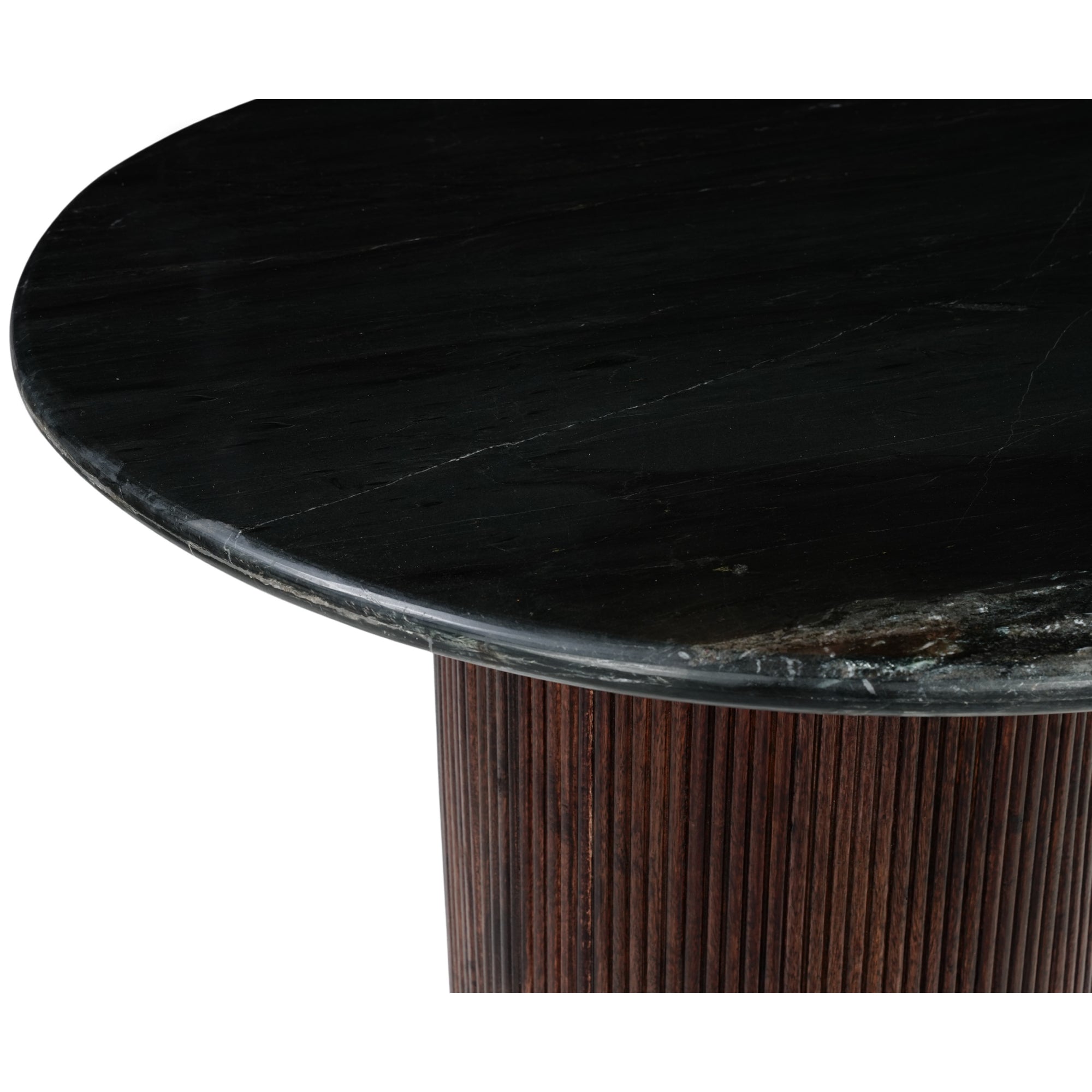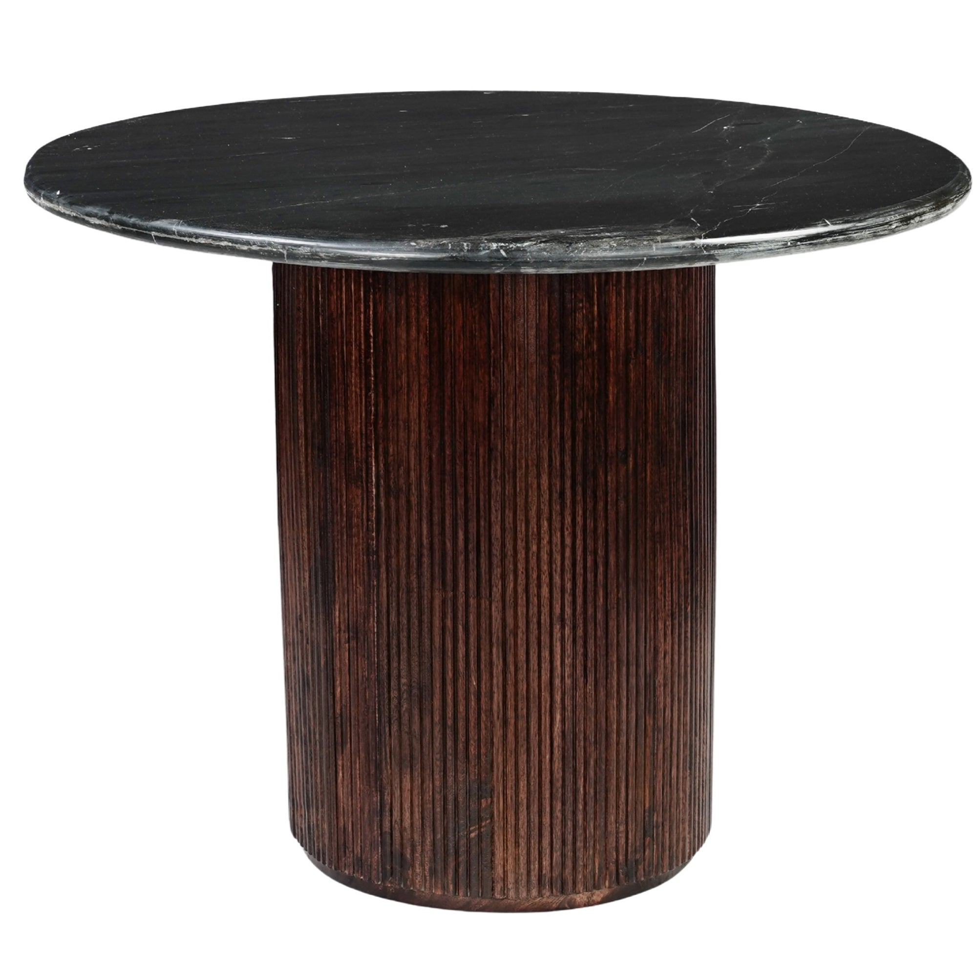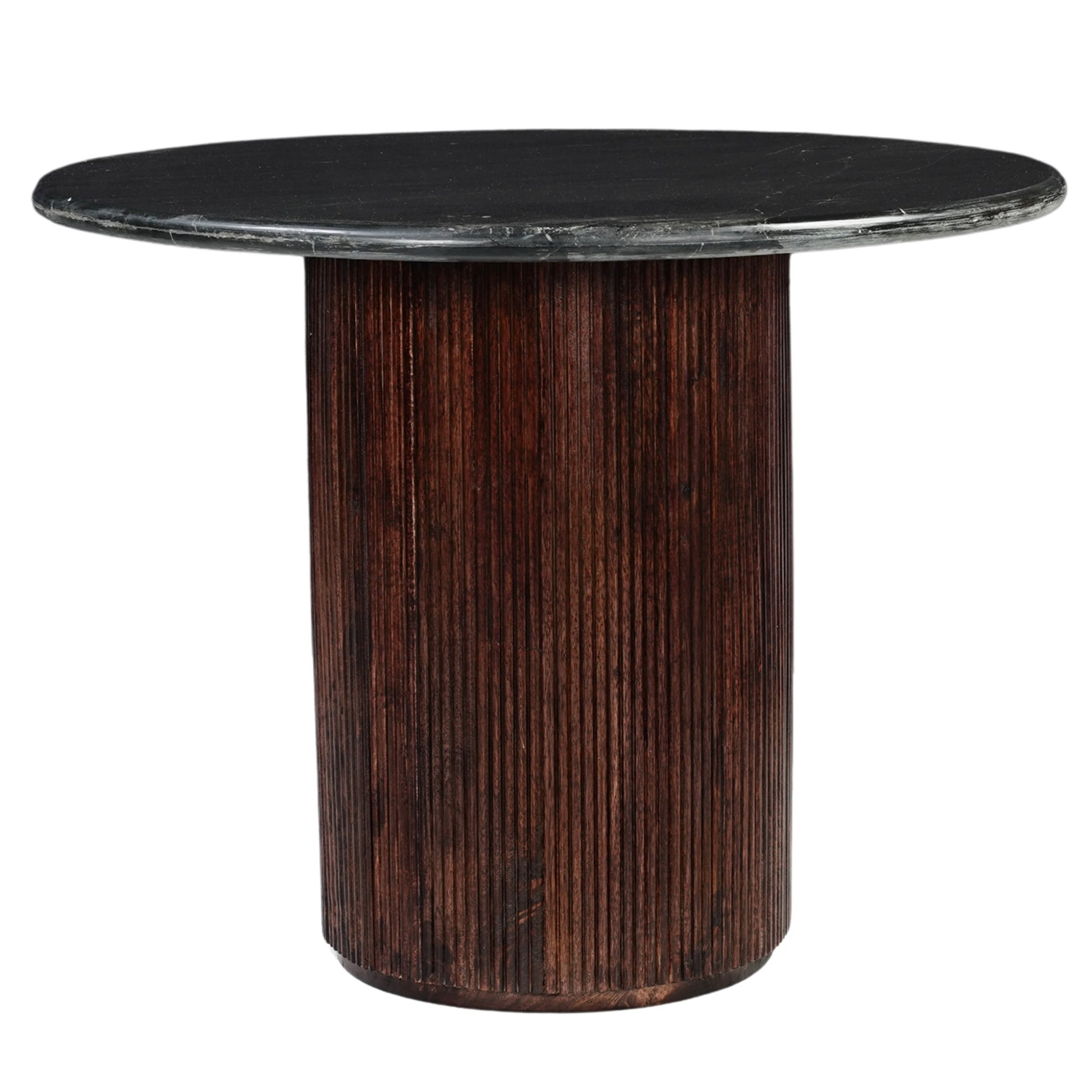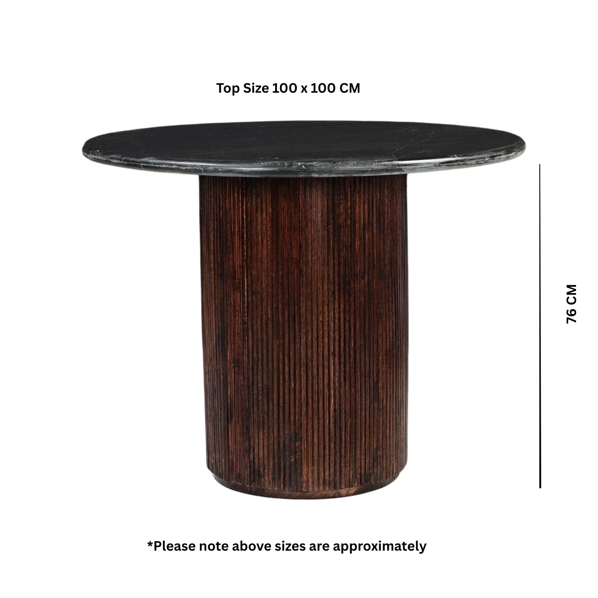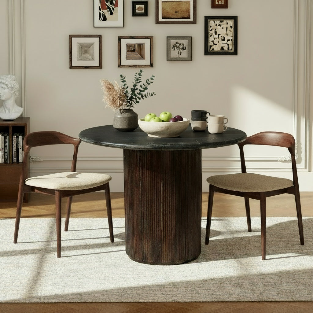 Luxor Round Black Marble Top with Wood Pedestal Dining Table