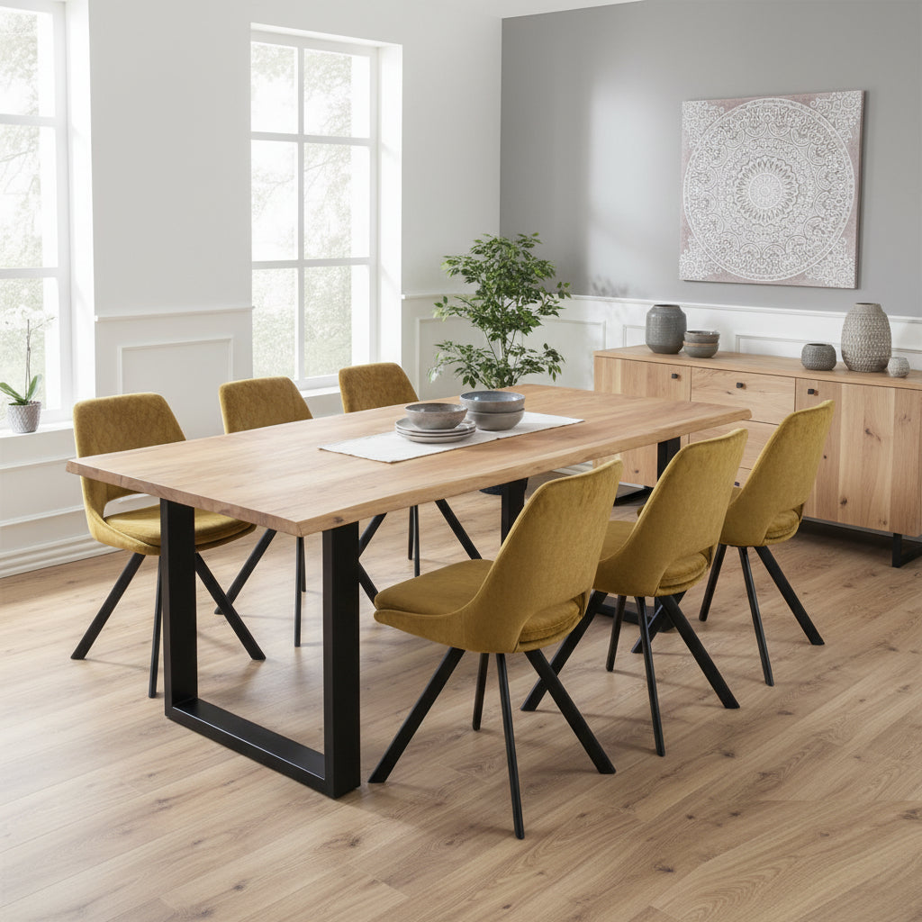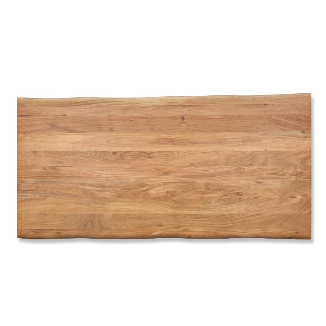 Would you like to have an elegant and modern dining room at the same time? The Natural Essential Live Edge Dining Table is the perfect choice: handcrafted from sustainable sourced solid Acacia Wood, this dining table comes in a natural wood colour with a matte finish and complemented with a solid metal base. It can seat 6-8 people.