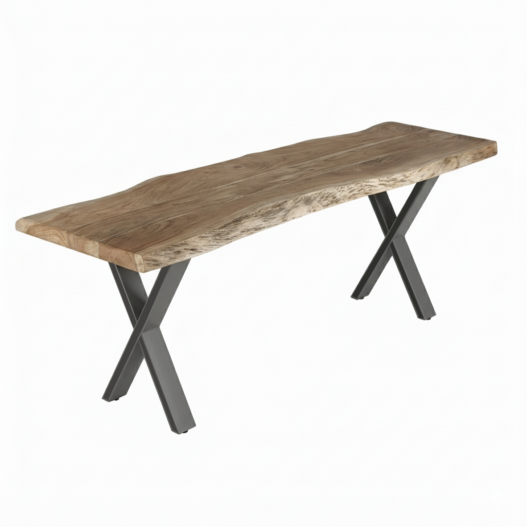 Acacia Live Edge Dining Bench With X Shape Grey Metal Legs 125 cm